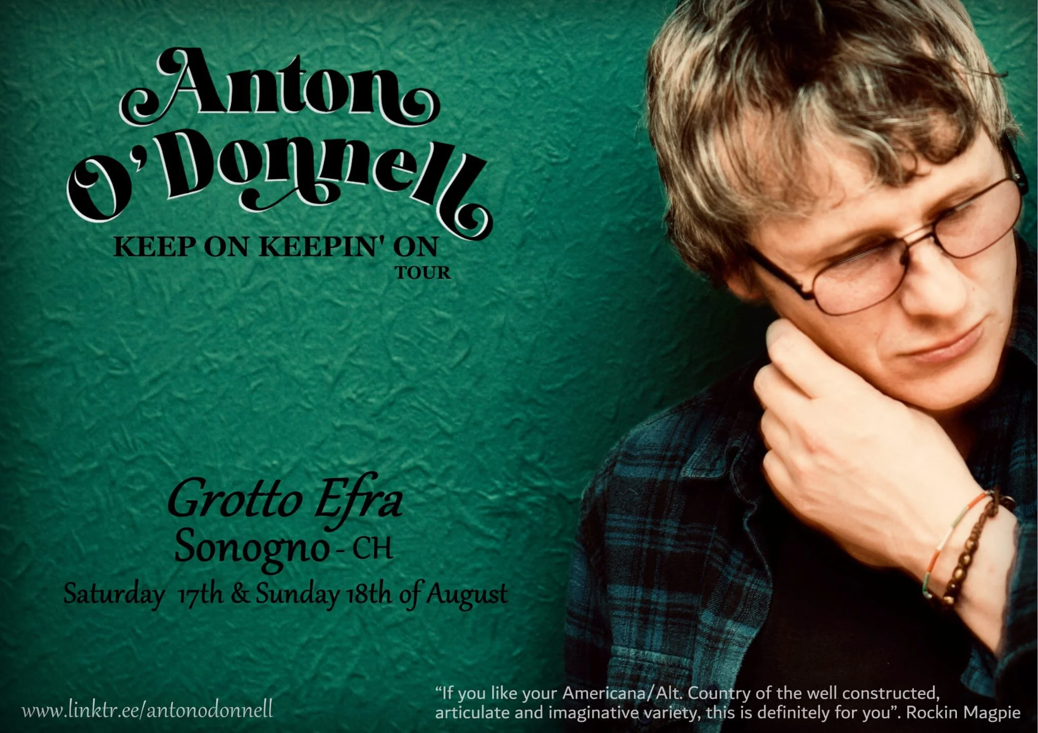 Cantautore di Glasgow, Anton ha portato la sua musica in Texas, a Roma, Nashville, Parigi, New Orleans, Rotterdam, Londra e di nuovo a casa. Prova vivente che il successo non significa necessariamente compromesso, Anton ha preso la musica che ama - blues, country, folk, rock n roll - e l'ha plasmata in un infuso potente, fresco, ma rassicurante e familiare.